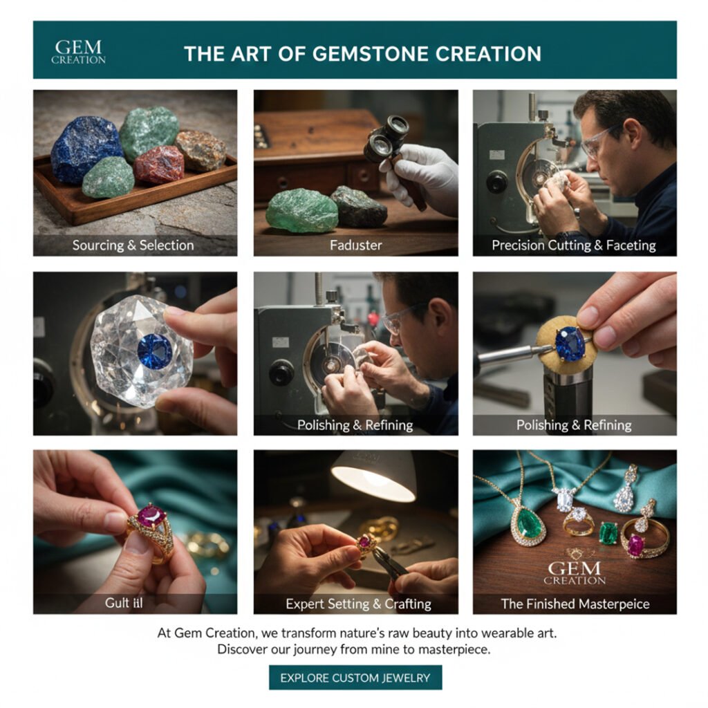 If you are searching for a custom cut gemstones manufacturer in India, Gem Creation offers precision cutting using modern lapidary techniques while preserving traditional craftsmanship.