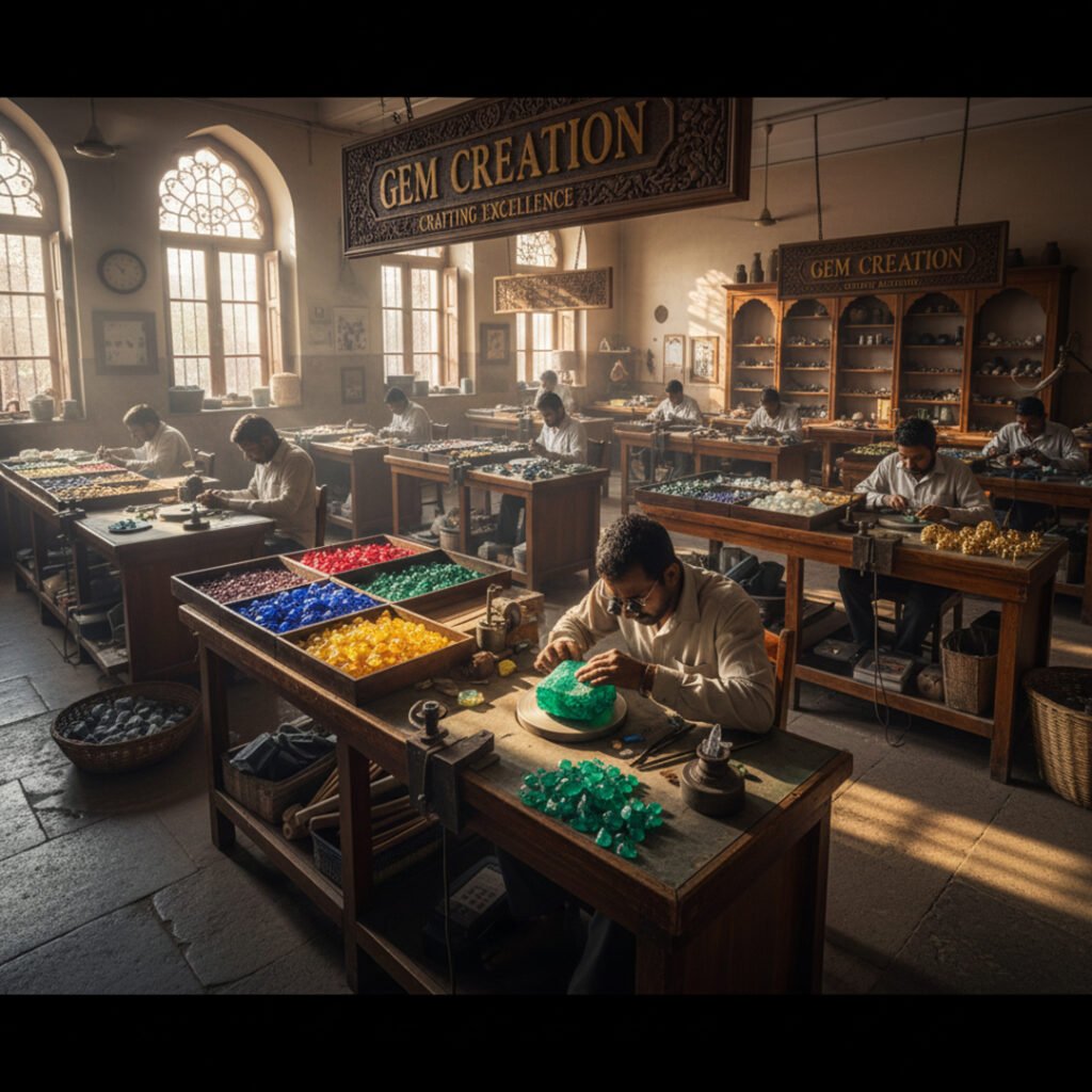 Gem Creation blends advanced gemstone cutting technology with traditional Jaipur craftsmanship. Highly skilled artisans use precision tools and international standards to ensure: